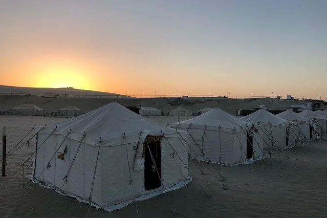 Seu dia inclui transporte privado em um 4x4 com ar-condicionado e motorista certificado, busca e retorno no hotel dentro de Doha, água mineral durante todo o trajeto, visita a um acampamento beduíno tradicional com passeio opcional de camelo e fotos com falcão (taxa extra pequena), duna bashing por cerca de duas horas nas areias vermelhas, pausas para café ou chá, visita ao mar interior em Khor Al Adaid e um jantar churrasco compartilhado antes do retorno à cidade.