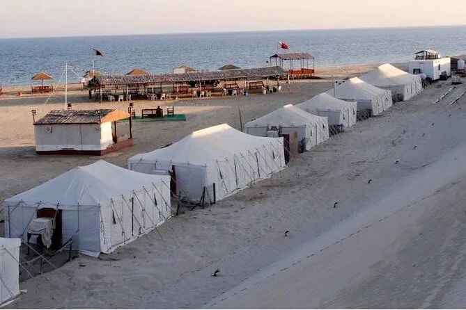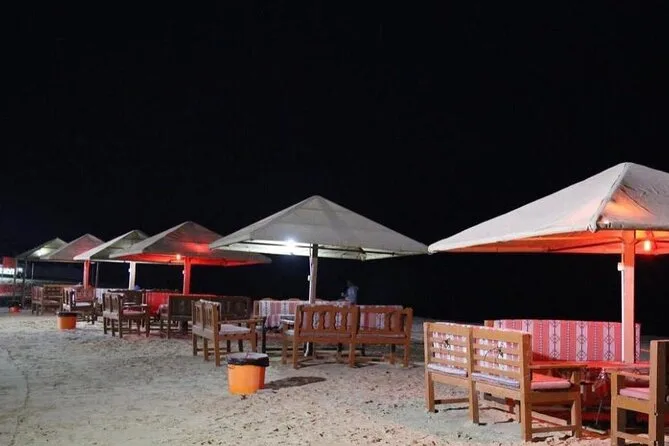 De volta ao acampamento, o jantar foi um churrasco defumado sob luzes penduradas—frango grelhado, pão quente saindo do fogo, saladas com hortelã que tinham um sabor mais fresco do que qualquer coisa que já provei em casa. Alguém tocava música de oud no celular enquanto as pessoas compartilhavam histórias sobre a parte favorita do passeio de dia saindo de Doha para Khor Al Adaid. Quando finalmente entramos no carro para voltar, meus sapatos estavam cheios de areia, mas eu nem me importei.