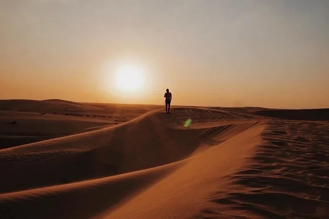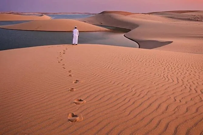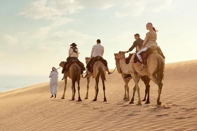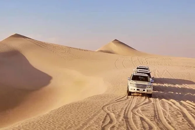 Você vai se aventurar pelo deserto do Qatar saindo de Doha em um 4x4 com ar-condicionado e motorista certificado—duna bashing nas areias douradas, chá em um acampamento beduíno e um passeio de camelo opcional (super recomendo). Depois, visita a Khor Al Adaid, onde o mar encontra as dunas em silêncio total. Finalize com um jantar churrasco defumado ao entardecer—um dia que fica na memória.