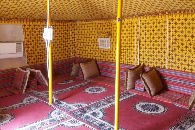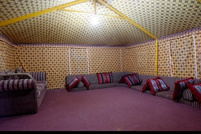 Sim, há um passeio curto de camelo no acampamento beduíno por um custo extra de 20 riais do Qatar (QR).
