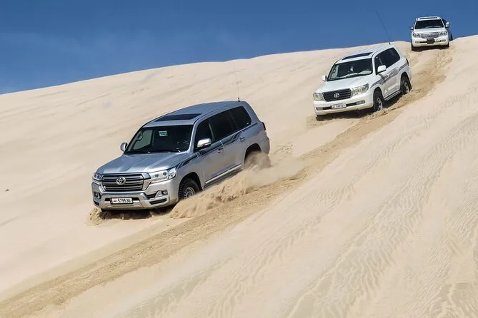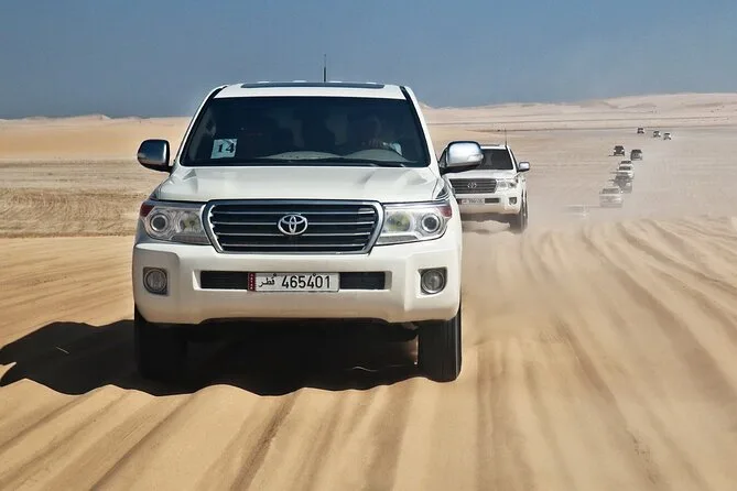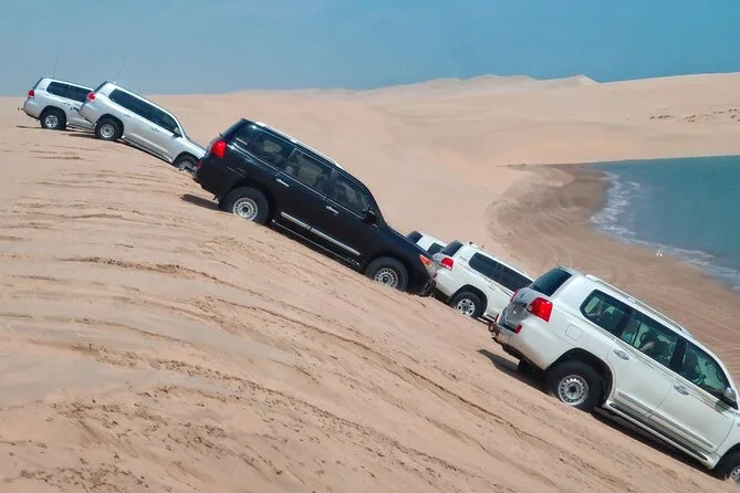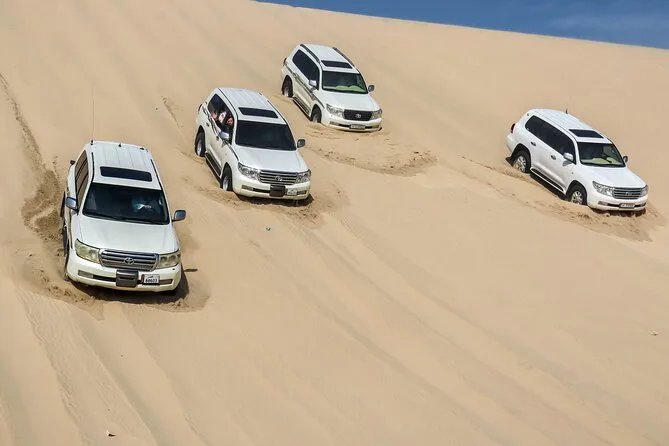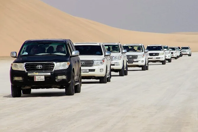 Você vai se aventurar no deserto ao sul do Qatar com um guia local, cruzando dunas infinitas de 4x4 até chegar em Khor Al Udaid—o Mar Interior onde o deserto toca o mar. Pare para beber algo gelado, experimente um passeio de camelo opcional ou faça fotos, e sinta o silêncio que só a areia guarda. Transporte de ida e volta está incluso, é só chegar pronto para algo diferente.