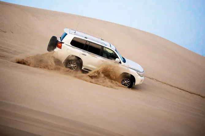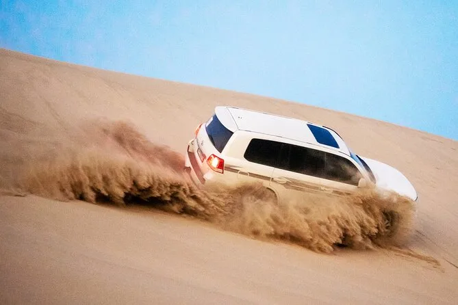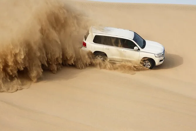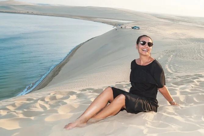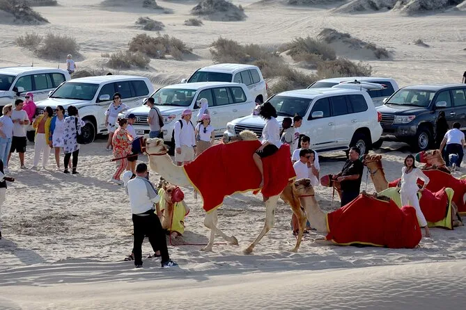 O seu dia inclui transporte de ida e volta em Doha ou Wakra, todo o trajeto com guia profissional licenciado, água engarrafada e refrigerantes, seguro viagem durante o passeio, além do tempo no Mar Interior de Khor Al Udaid—com atividades opcionais como passeio de camelo ou quadriciclo (custo extra) antes de voltar para a cidade.