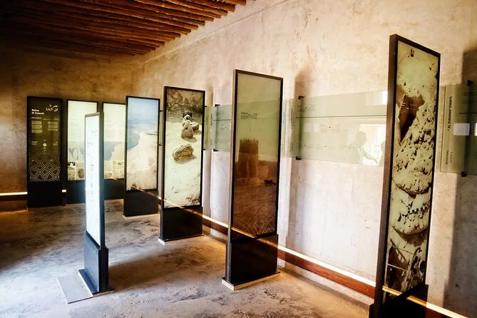 O ponto alto para mim foi o Forte Al Zubara. Ele fica isolado na beira do deserto, com paredes grossas que protegem do calor e das tempestades de areia. Por dentro, há uma exposição com fragmentos de cerâmica e ferramentas de mergulho de pérolas encontradas por perto — nosso guia explicou para que servia cada item (eu nunca tinha noção do quanto essa atividade era dura). Se subir nas muralhas perto do meio-dia, a vista do sítio arqueológico é ampla e o sol deixa tudo com um tom quase dourado.