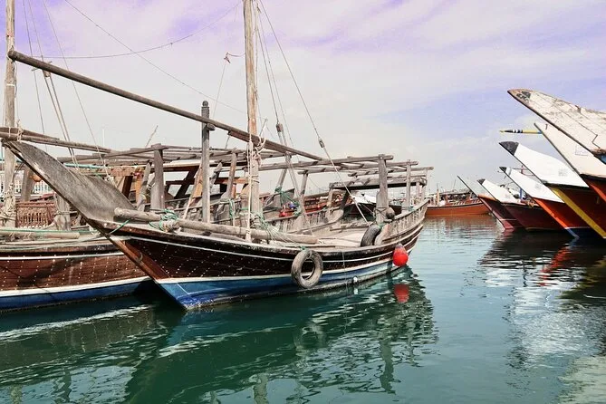 O ar da manhã tinha um toque salgado quando chegamos ao porto de Al Khor. Os pescadores já estavam a postos, com seus barcos balançando suavemente ao lado dos cais. Nosso guia, Khalid, mostrou como os tradicionais dhows de madeira ainda são feitos à mão — ele até nos apresentou um artesão que alisava as tábuas com um velho plano de mão. O cheiro de peixe fresco se misturava ao diesel dos motores, e eu não resisti a tirar algumas fotos das redes enroscadas secando ao sol.