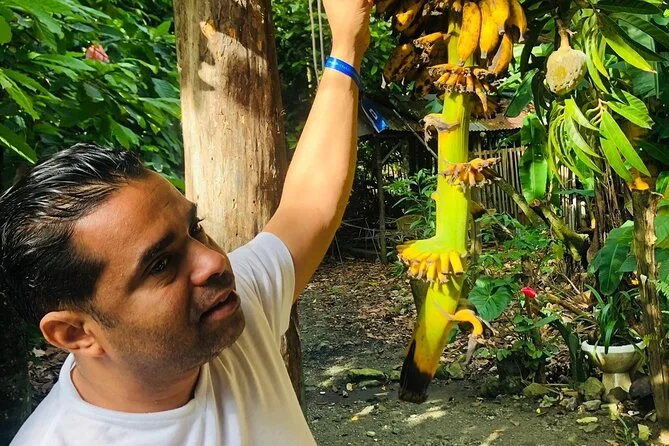 Seu dia inclui transporte do hotel em Puerto Plata (ou Sosua ou Cofresi), entrada no Blue Lagoon El Dudu com acesso às plataformas de salto e tirolesa se quiser, paradas em plantações e num mini zoológico para ver animais locais de perto, além do almoço servido na praia de Caleton antes de voltar à tarde.