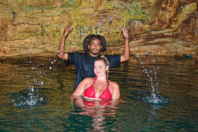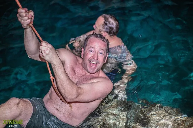 Sim, há tempo para nadar ou pular no rio subterrâneo dentro da gruta.