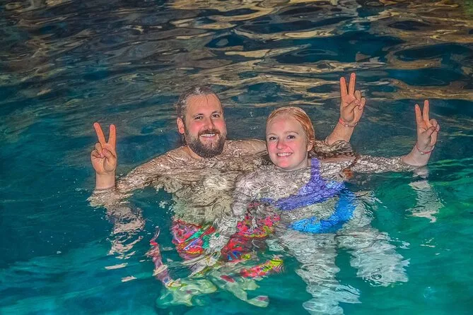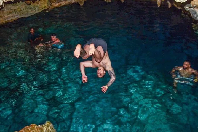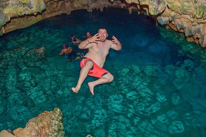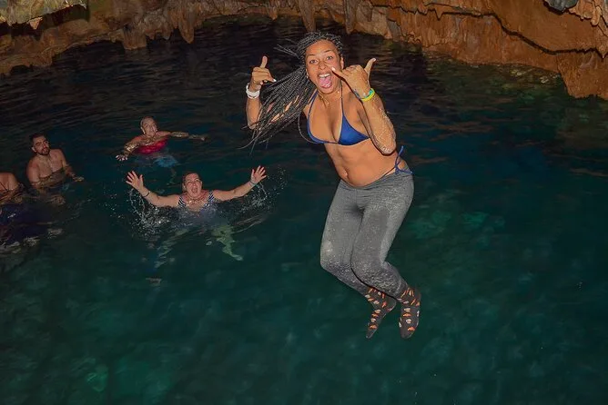 Sim, você pode nadar numa caverna de água cristalina durante o tour.