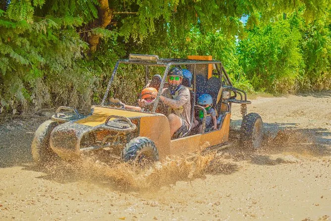 Seu dia inclui transporte ida e volta do hotel em Punta Cana, passeio de buggy guiado por trilhas na selva até uma fazenda ecológica para degustação de chocolate e café frescos, tempo para nadar numa piscina cristalina na caverna e tempo livre na Praia Macao antes do retorno.