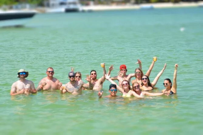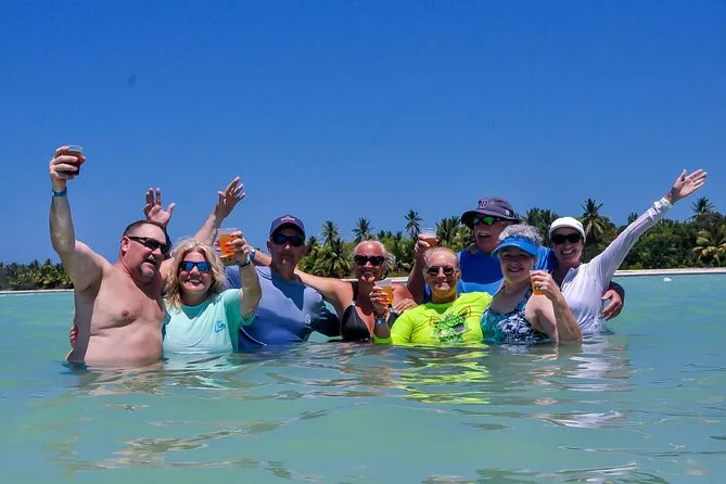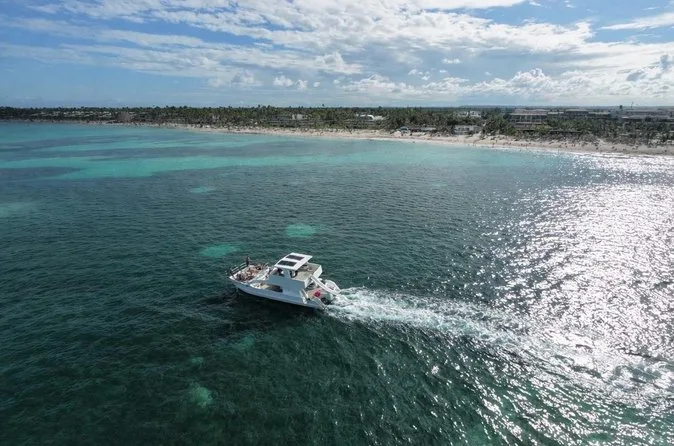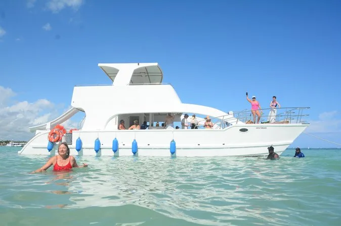 Seu dia inclui transfer ida e volta do hotel em Punta Cana, três horas a bordo de um catamarã privativo com equipe animadora, open bar ilimitado com vodka, tequila, cerveja e rum, além de refrigerantes e sucos; petiscos como frutas tropicais, nachos com molhos e mini sanduíches; uso do equipamento de snorkel; tempo para nadar na piscina natural de areia; música para dançar o tempo todo; coletes salva-vidas e boias disponíveis antes do retorno relaxado (ou levemente queimado pelo sol).