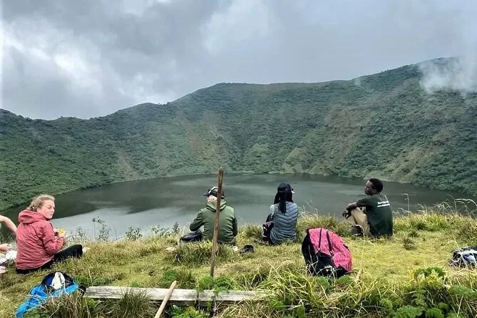 Você vai atravessar uma floresta exuberante até o Monte Bisoke com um guia local, alcançar o lago da cratera a 3.711 metros e conhecer membros da comunidade que atuam na conservação. Se busca uma aventura real na montanha com histórias locais, este é o passeio.