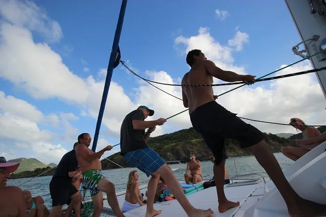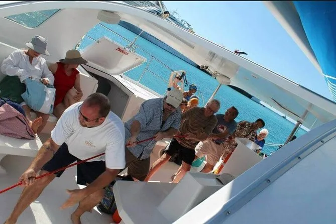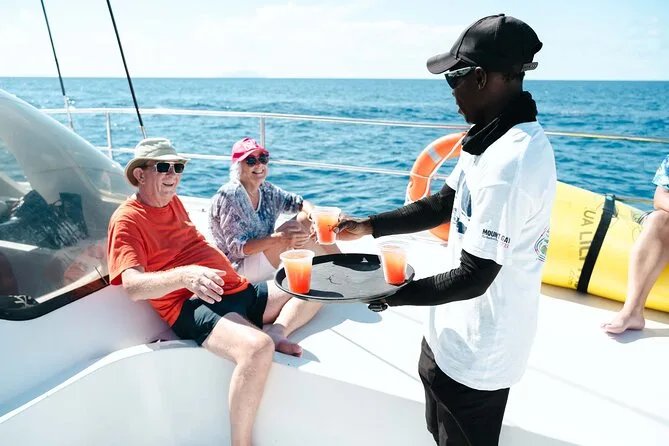 Você vai navegar pela tranquila costa sul de Sint Maarten em um catamarã com tripulação local, parando em Little Bay e Mullet Bay para snorkel ou relaxar nas águas mornas. Aproveite um almoço buffet caribenho a bordo e veja os aviões pousarem na Praia de Maho antes de voltar com o cabelo salgado e o corpo aquecido pelo sol.