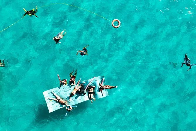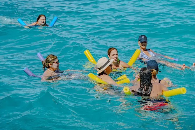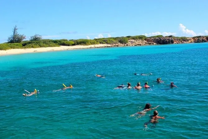Seu dia inclui embarque fácil no píer da Bobby’s Marina em Philipsburg, todo o equipamento de snorkel com instrução se precisar, paradas em Little Bay e outras praias nas costas holandesa e francesa (sujeito ao tempo), uso de boias para flutuar ou serviço de bote para a praia quando possível, bar aberto com cerveja e bebidas durante todo o passeio, almoço buffet caribenho com carnes assadas e saladas (com opções vegetarianas se solicitado), áreas com sombra e lugares ensolarados na frente para relaxar entre os mergulhos — além de chuveiros com água doce e banheiros elétricos para seu conforto durante o passeio.