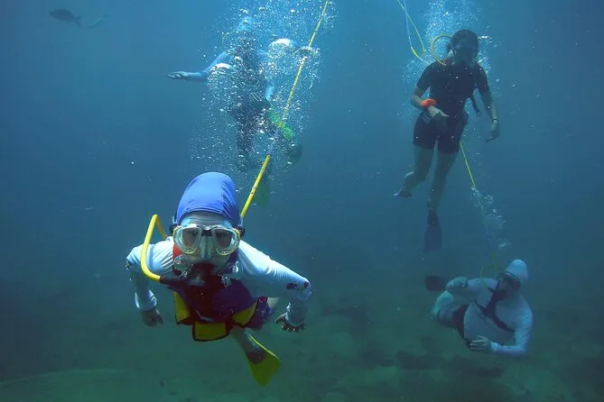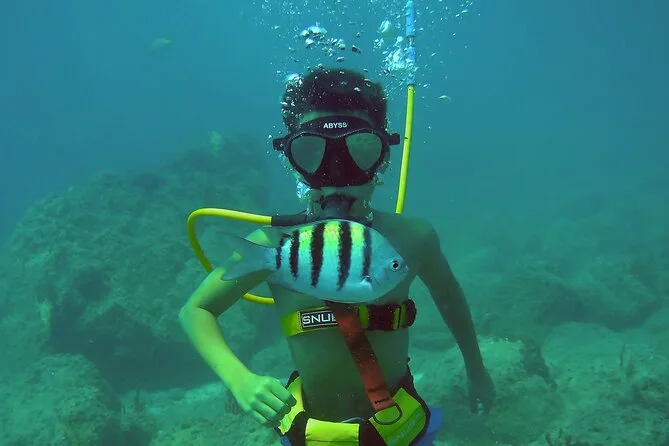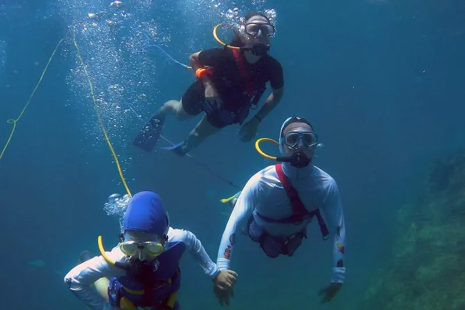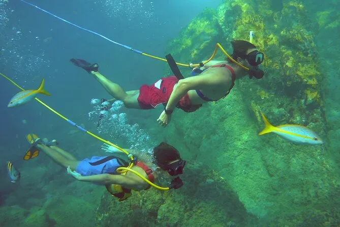 Seu dia inclui um rápido passeio de barco de 10 minutos da Bobby's Marina até Little Bay com todo equipamento de SNUBA e snorkel fornecido; você será guiado por um programa de mergulho em águas rasas, indicado para nadadores a partir de 8 anos, e retorna de barco ao final da aventura.