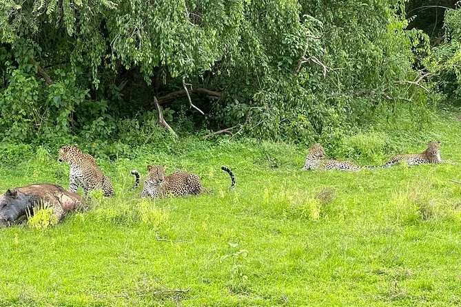 Seu dia inclui entrada em Yala em jeep compartilhado e confortável com guia local experiente; na opção de 6 horas, você recebe café da manhã e água engarrafada durante o trajeto; na de 12 horas, também almoço, lanches e água ilimitada — tudo isso explorando savanas, florestas e lagoas cheias de vida selvagem.