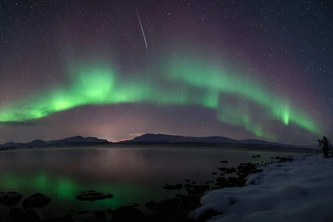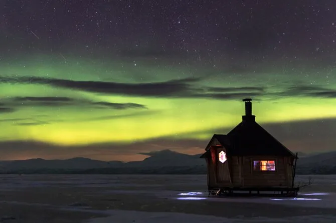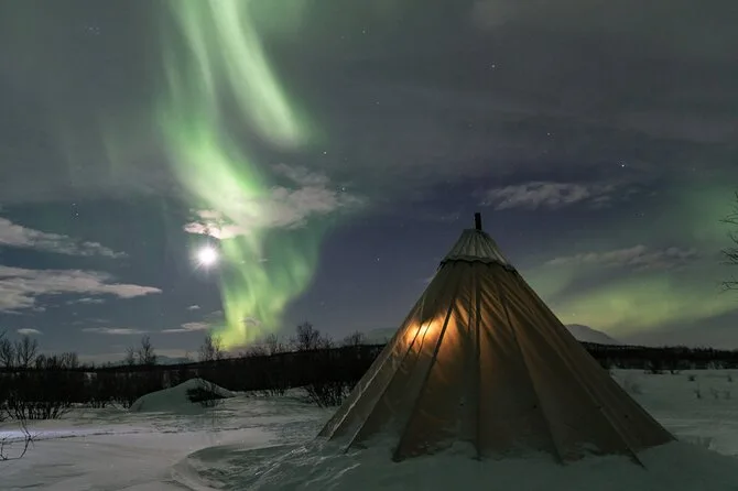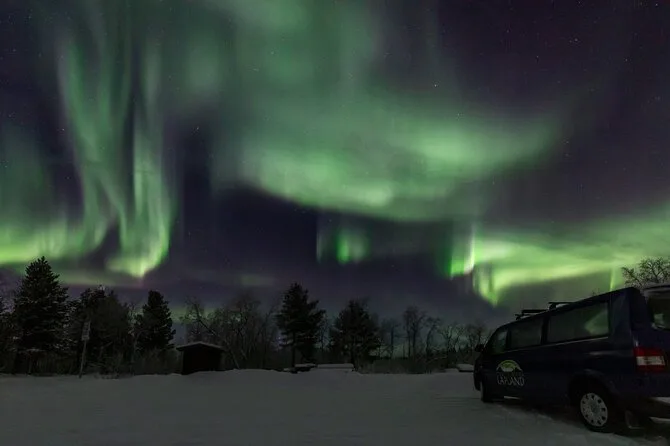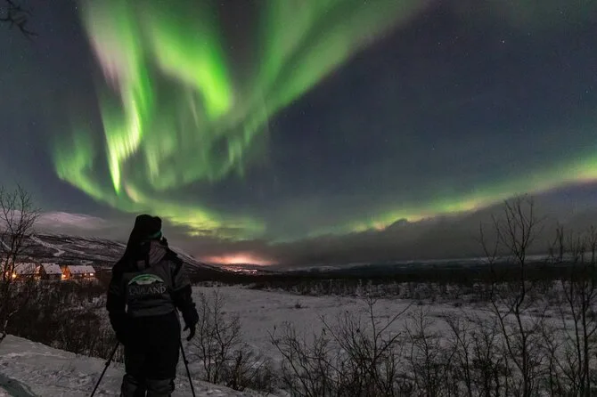 Você vai caçar a aurora boreal em Abisko de três formas diferentes—com um guia local, caminhando, de van ou de trenó, conforme o clima. Conte com ajuda prática para usar a câmera, suco quente de lingonberry para esquentar e a energia de um grupo pequeno esperando junto pelas primeiras cores no céu ártico.