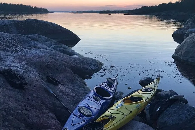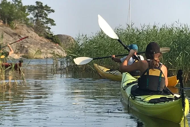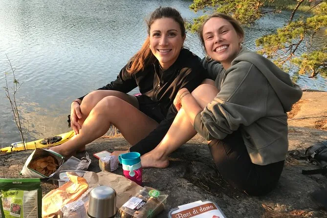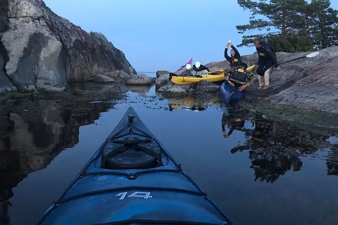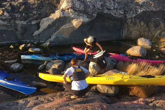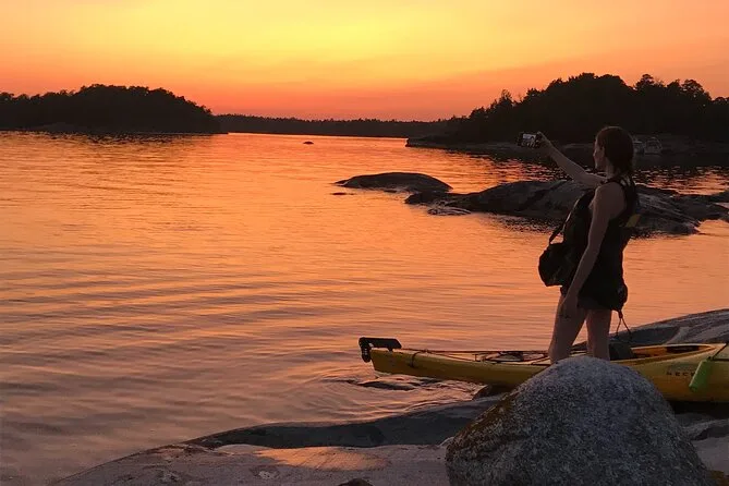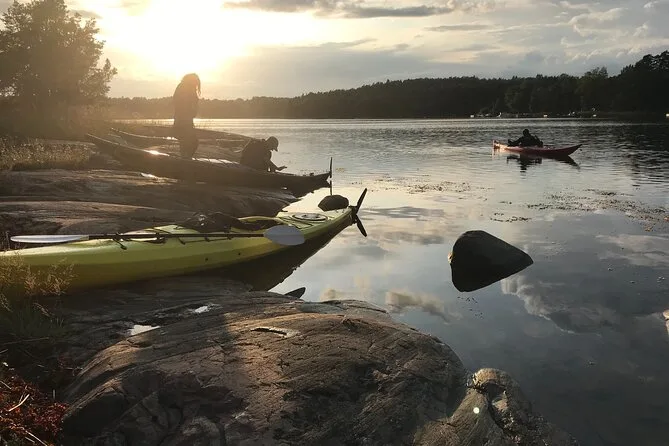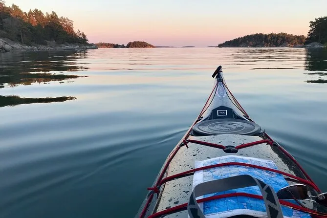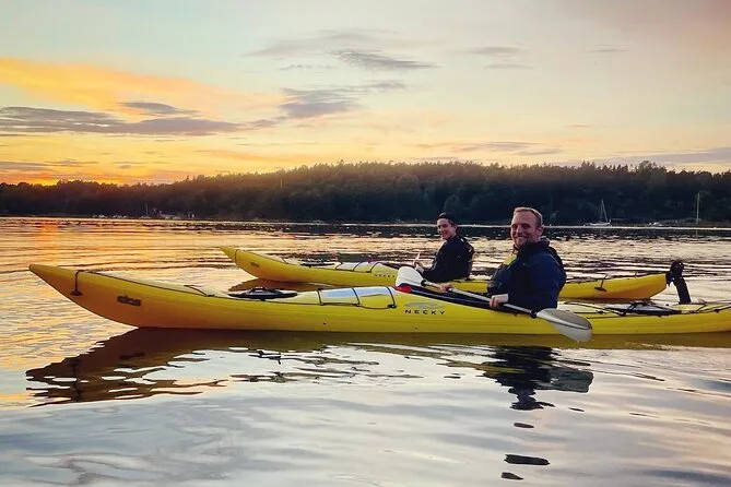 Seu dia inclui transfer privativo do centro de Estocolmo, todo o equipamento para caiaque (individual ou duplo), acompanhamento da Alexandra, que conhece bem essas águas, além do Fika sueco com doces veganos caseiros e chá verde servido durante uma pausa numa das ilhas antes de voltar ao entardecer no arquipélago.
