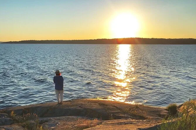 Remar pelo arquipélago de Estocolmo ao pôr do sol com um guia local que acompanha seu ritmo, fazer uma pausa para o tradicional Fika sueco numa ilha (com doces veganos caseiros) e contar com transfer privativo saindo da cidade. Águas calmas, céus em transformação, risadas ao redor do chá e o clima acolhedor de um grupo pequeno — aqui não é só sobre conhecer lugares, é sobre se sentir parte da Suécia por uma noite.