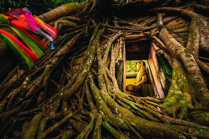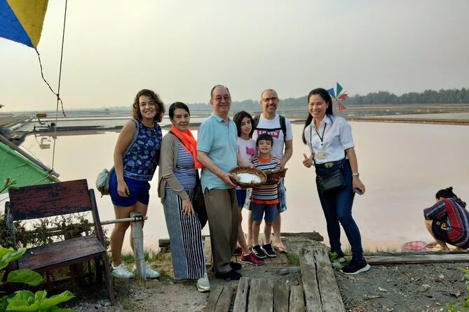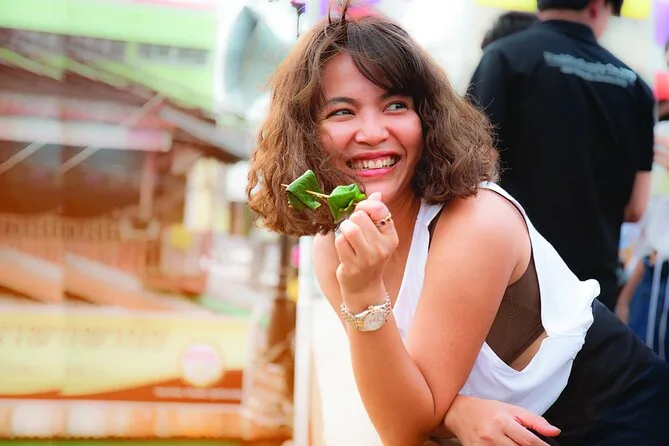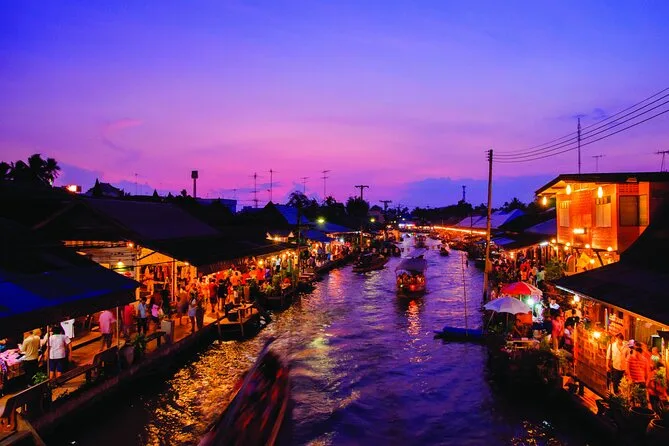 Você vai passar pelo Mercado da Ferrovia Mae Klong com o trem quase tocando as barracas, visitar o templo Wat Bang Kung abraçado pelas raízes da figueira, provar delícias no Mercado Flutuante de Amphawa com seu guia local, e terminar com um passeio de barco sob árvores iluminadas por vaga-lumes. Um passeio que é agitado e tranquilo na medida certa — uma noite que fica na memória depois de voltar para Bangkok.