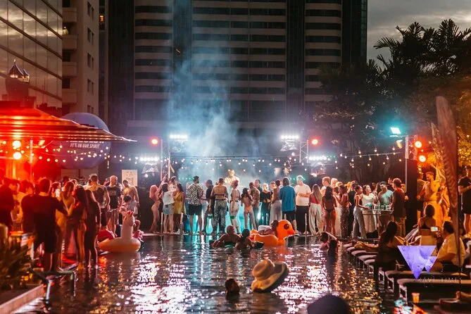 Você vai mergulhar na cena mais louca de techno e psy trance de Bangkok, com DJs ao vivo, pistas iluminadas de neon e aquela vibe real de pool party. Conheça locais, experimente drinks novos (e talvez arranhe um pouco do tailandês), depois refresque-se na piscina enquanto a música não para. Prepare-se para dançar suado, rir muito e sentir aquela energia única de quem está ali pelo mesmo motivo.