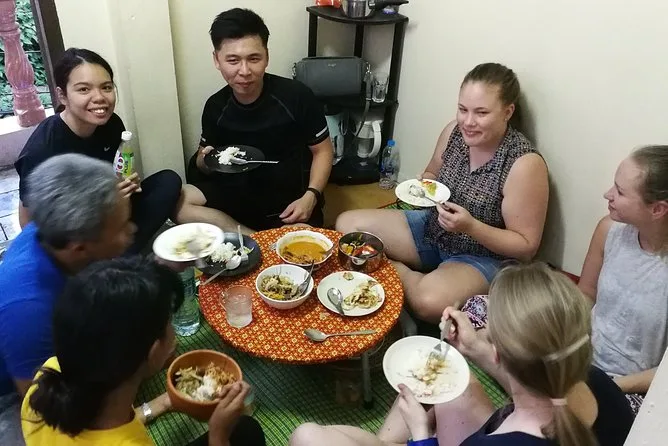 Sim, uma refeição tailandesa autêntica está incluída em um restaurante familiar local em Thonburi antes do passeio de bike.