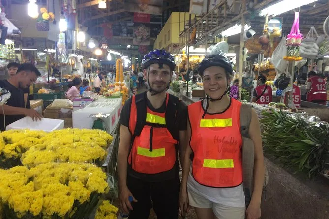 O passeio inclui várias paradas em templos e mercados; espere passar uma noite (cerca de 4 a 5 horas) pedalando com pausas.