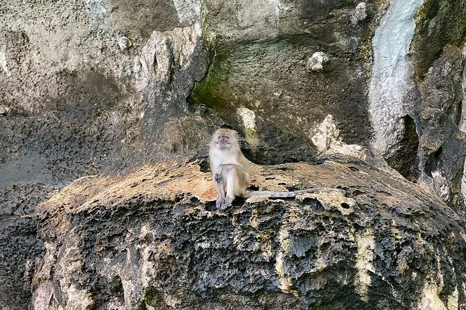 “Não alimente os macacos — eles nunca esquecem um rosto,” brincou nosso guia enquanto navegávamos pela Monkey Bay. E ele tinha razão; um deles ficou de olho na minha mochila como se soubesse que eu tinha lanchinhos lá dentro. A manhã começou no píer de Tonsai, onde nos encontramos perto do McDonald’s (jamais pensei que diria isso na Tailândia). Nosso guia, Li, distribuiu coletes salva-vidas e máscaras com um sorriso tranquilo — parecia conhecer todo mundo da ilha. O ar estava quente e salgado, com um cheiro que misturava protetor solar e arroz frito das barracas próximas.