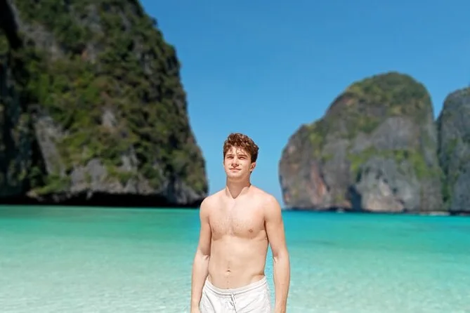 A viagem de speedboat foi mais barulhenta do que eu esperava — o vento batendo forte nos ouvidos, a água do mar espirrando no rosto. Primeiro paramos em Maya Bay. Famosa pelo filme com Leonardo DiCaprio (Li não perdeu a chance de zoar a gente), mas, sinceramente, a areia ali era mais macia que qualquer praia que já pisei. Tinha gente, mas não estava lotado; achei um cantinho tranquilo e fiquei só ouvindo o som da água por um tempo. Depois, na Lagoa Pileh, pulamos direto do barco numa água tão cristalina que dava pra ver os dedos dos pés — ou no meu caso, me atrapalhando porque esqueci como o coral é escorregadio.