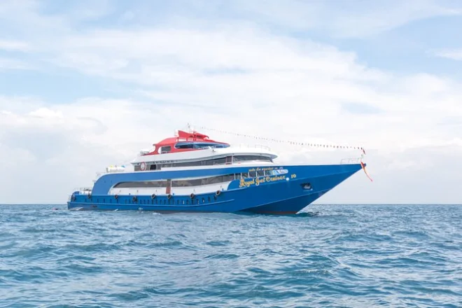 Já estávamos suando um pouco quando chegamos ao Pier Tonsai — não só pelo sol, mas porque estávamos no limite do horário (coisa de turista apressado). O Royal Jet Cruiser já nos esperava, e um dos tripulantes acenou com um sorriso. Tem um cheiro salgado no ar em Koh Phi Phi que gruda na pele, sabe? Fizemos o check-in cerca de 20 minutos antes da saída, e lembro de pensar como tudo parecia mais organizado do que em outros passeios de barco que fizemos na Tailândia. Nosso guia, Somchai, ajudou a guardar as malas e até brincou com meu chapéu desbotado (“chapéu da sorte para mar calmo”, disse ele). Gostei dele na hora.