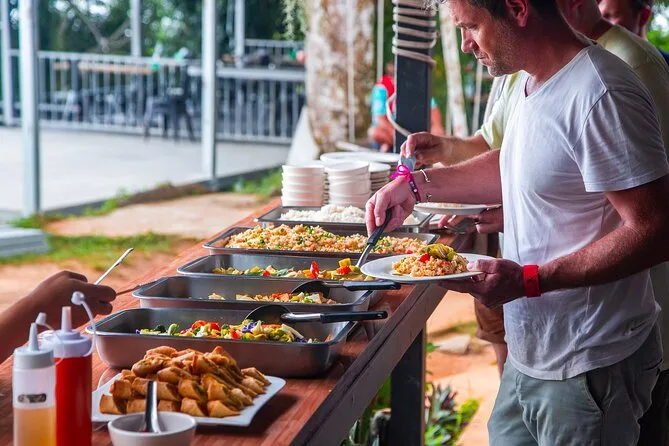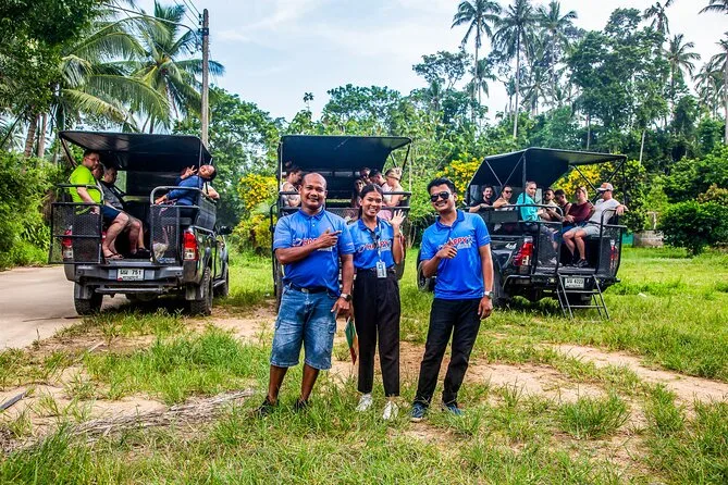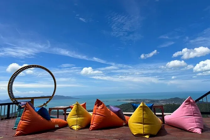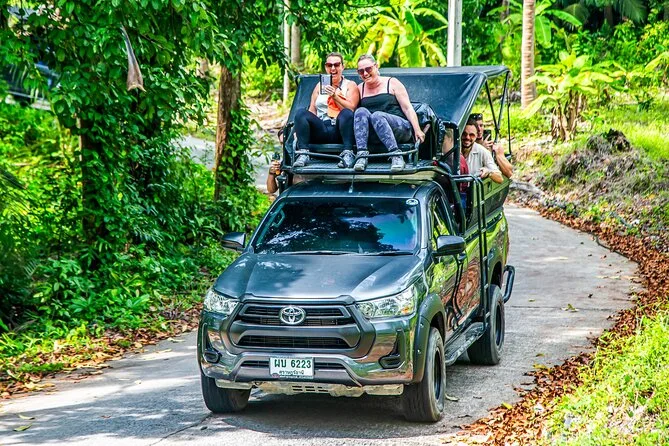 Seu dia inclui traslado do hotel (exceto para chegadas pelo porto de Nathon), todas as entradas para cachoeiras e jardins, água mineral durante todo o passeio, guia profissional que conhece todos os atalhos das colinas, seguro viagem para sua segurança, almoço típico tailandês em restaurante na montanha com vista panorâmica — e até uma toalha refrescante para os momentos de calor.