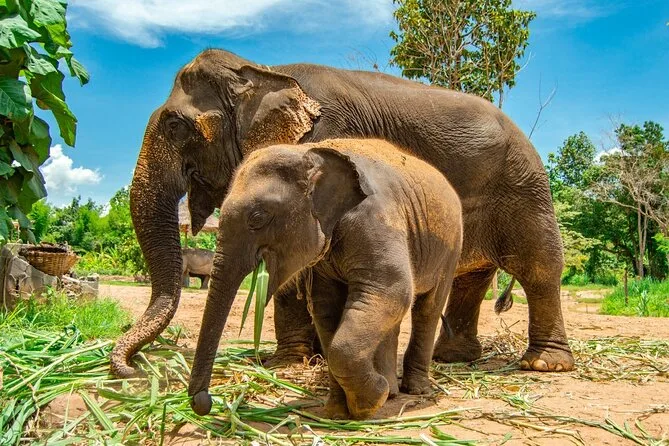 Sim, há um momento reservado para preparar comida e alimentar dois elefantes perto de um santuário.