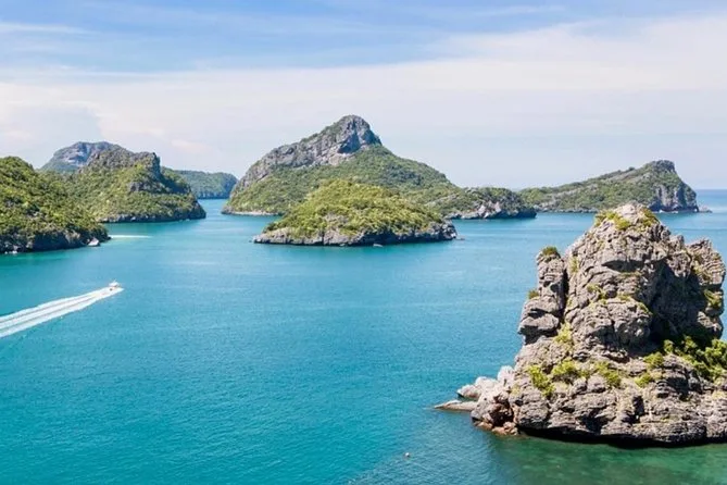Você parte de Koh Samui em um speedboat privativo com guia local, faz snorkel em Koh Wao e visita o mirante do lago esmeralda em Ang Thong. Depois, aproveita um almoço tradicional tailandês em Koh Paluay e relaxa nadando ou fazendo caiaque pelas ilhas — terminando o dia com sal no cabelo e lembranças para guardar.