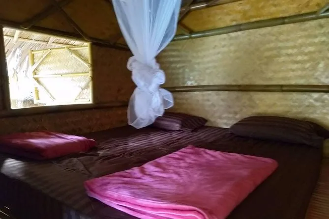 Sim, você vai passar a noite em cabanas simples de bambu, com colchão e mosquiteiro, em uma estação de guarda-parque no Lago Cheow Lan.
