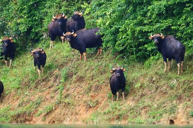 É possível avistar elefantes selvagens, gibões, bos gaurus (búfalo-indiano) e outros animais durante os safaris de barco e as caminhadas na selva.
