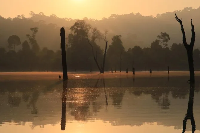 Seu pacote inclui transfer de ida e volta do hotel em Khao Lak, água mineral e refrigerantes durante os dois dias, entrada no parque nacional paga pelo guia, todas as refeições descritas (almoço e jantar tailandês, mais café da manhã), acomodação compartilhada em cabanas simples de bambu com mosquiteiros no interior do Parque Nacional Khao Sok — e todo o transporte de barco longtail pelo Lago Cheow Lan, retornando à noite.