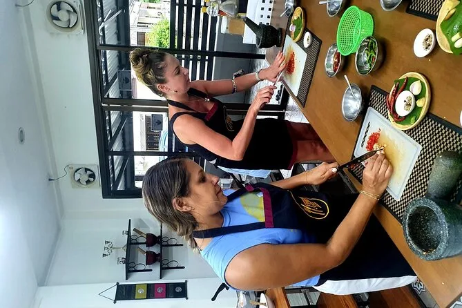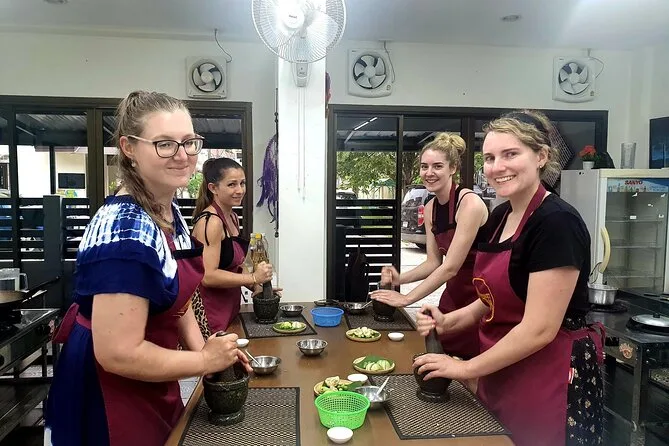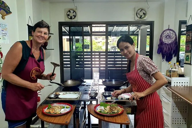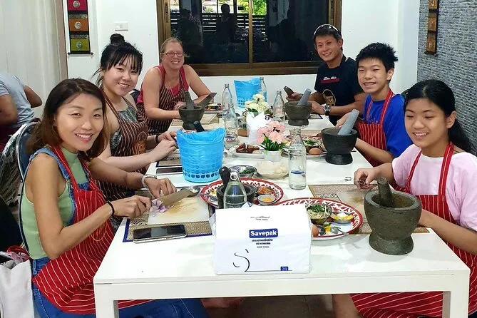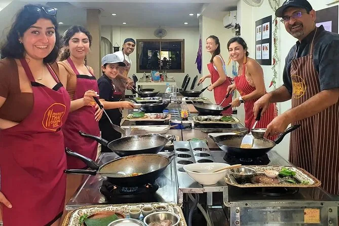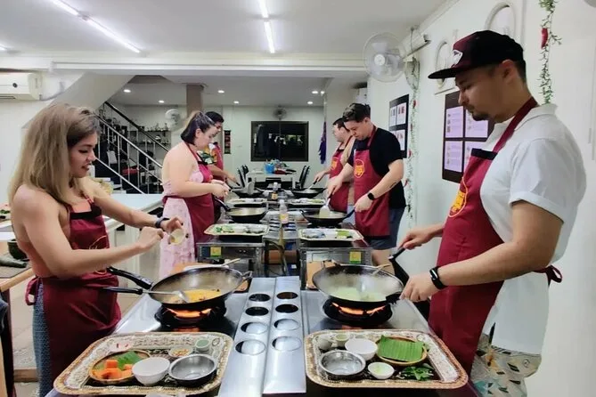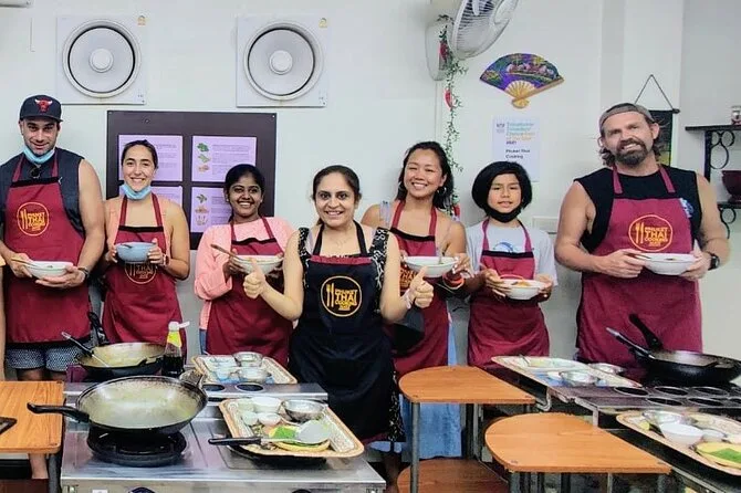 Em Phuket, mergulhe na verdadeira culinária tailandesa — comece com um tour animado por um mercado local (com degustação de frutas), depois coloque a mão na massa fazendo pasta de curry do zero e prepare clássicos como Tom Yum e Pad Thai na sua própria estação. Aproveite a refeição em grupo, leve as sobras para casa e receba as receitas; uma diversão bagunçada que vai ficar na memória toda vez que sentir cheiro de capim-limão.