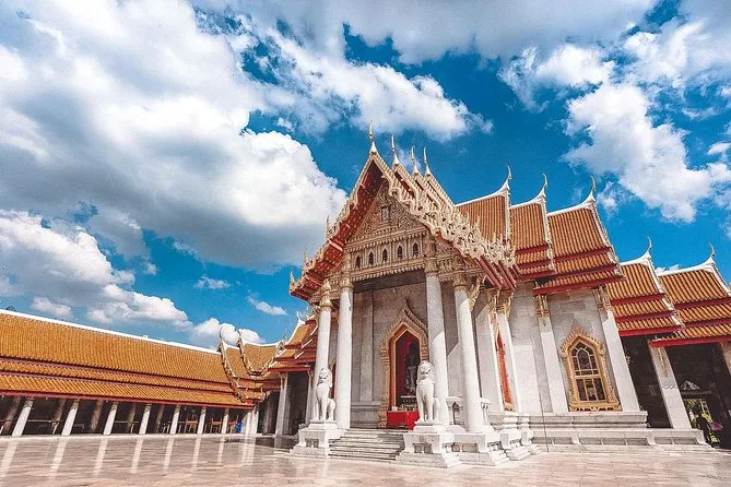 Entre nos templos mais icônicos de Bangkok com um guia local que conta histórias que você não encontra nas placas. Veja de perto o Buda de Ouro, encante-se com o Buda Reclinado do Wat Pho e explore o iluminado Templo de Mármore — tudo com transporte e pickup no hotel incluídos.