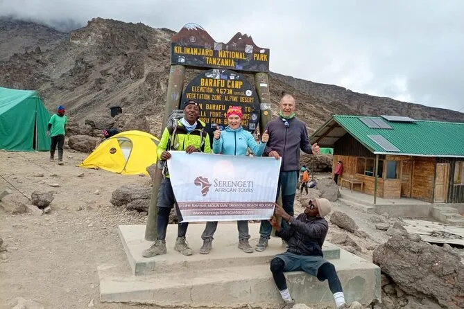 Deixar o acampamento Karanga rumo à Cabana Barafu foi curto, mas puxado — o terreno virou pedregoso e aberto, com vento cortando em cada curva. Nosso guia lembrou que ali era a última parada para água dos carregadores; depois era só gelo e pedra até o dia do cume. O jantar veio cedo (arroz com feijão nunca teve um gosto tão bom), e Joseph nos deu um papo motivacional para a noite do cume: roupas em camadas, lanternas checadas duas vezes, tentar dormir até às 19h mesmo se estiver muito agitado para fechar os olhos.