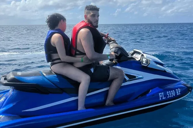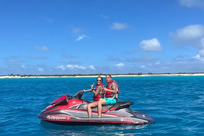 Seu tempo inclui o uso de um jet ski bem cuidado e um colete salva-vidas confortável — tudo pronto para você assim que chegar. Não precisa levar equipamento extra; é só aparecer no ponto de jet ski em Grand Turk entre 8h e 18h.