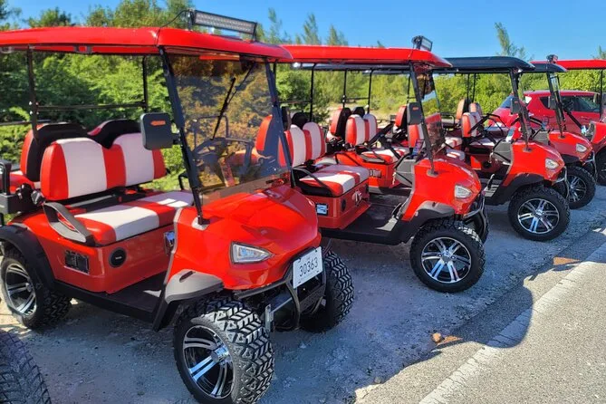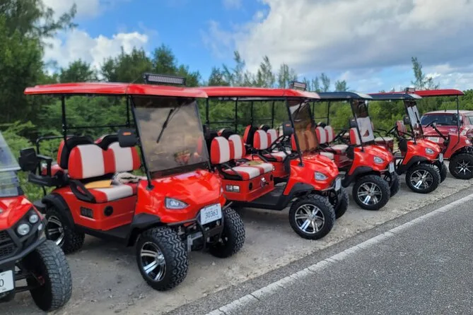 Explore as ruas coloridas de Grand Turk no seu ritmo com um carrinho de golfe privado para 4 pessoas — com música se quiser — e pare para fotos ou lanches quando quiser. Assentos confortáveis, proteção contra sol e chuva, e o calor humano dos locais tornam esse passeio leve e diferente.