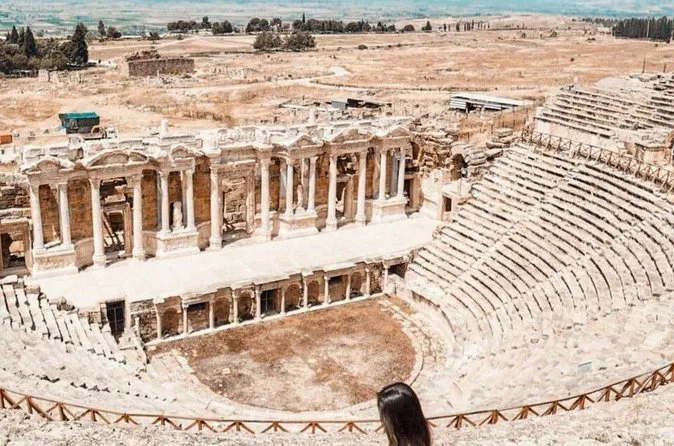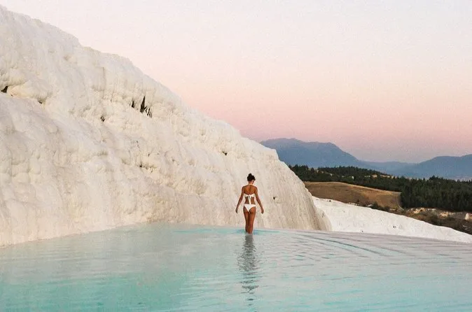 Você vai andar descalço pelas piscinas brancas surreais de Pamukkale, relaxar nas águas termais com vista para o vale, explorar as ruínas antigas de Hierápolis no seu ritmo e aproveitar um almoço animado em buffet antes de voltar para Antalya — tudo com traslado fácil do hotel e um guia que traz a história da Turquia à vida.