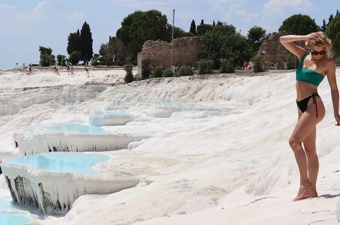 Seu dia inclui traslado confortável de ida e volta do hotel em Antalya, todos os transfers em ônibus com ar-condicionado, guia em inglês durante toda a viagem, seguro completo para sua tranquilidade, entrada nas piscinas termais de Pamukkale e em Hierápolis (se opção selecionada), além de almoço em buffet livre com pão fresquinho, saladas e opções vegetarianas antes do retorno à tarde.
