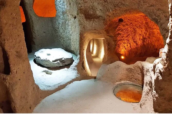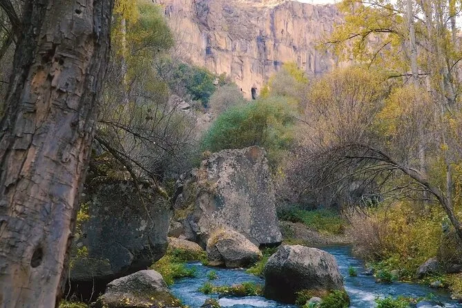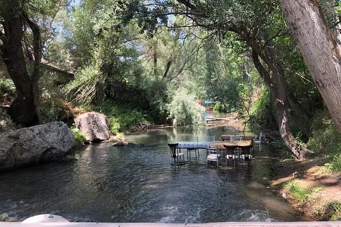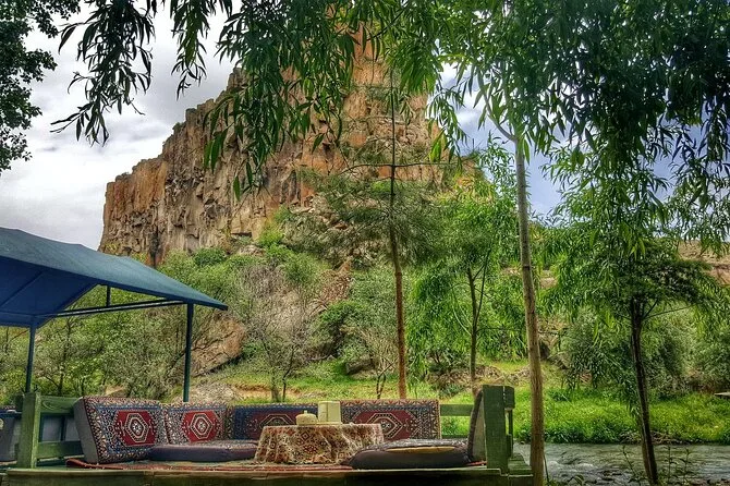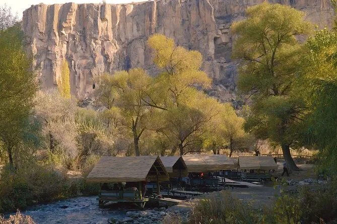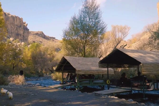 Seu dia inclui transporte privado desde o hotel em Cappadocia, ingressos para todos os locais (incluindo a Cidade Subterrânea de Kaymakli), taxas de estacionamento cobertas, além de um almoço à beira do rio com pratos locais antes do retorno confortável.