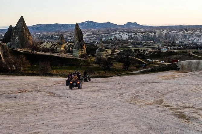 Você vai acelerar pelos vales vulcânicos de Cappadocia de quadriciclo enquanto o pôr do sol colore os vales Swords, Rose e Love. Um guia local mostra as chaminés de fada e antigas casas-caverna antes de te deixar no hotel — poeira no rosto, olhos brilhando e sorriso no rosto.