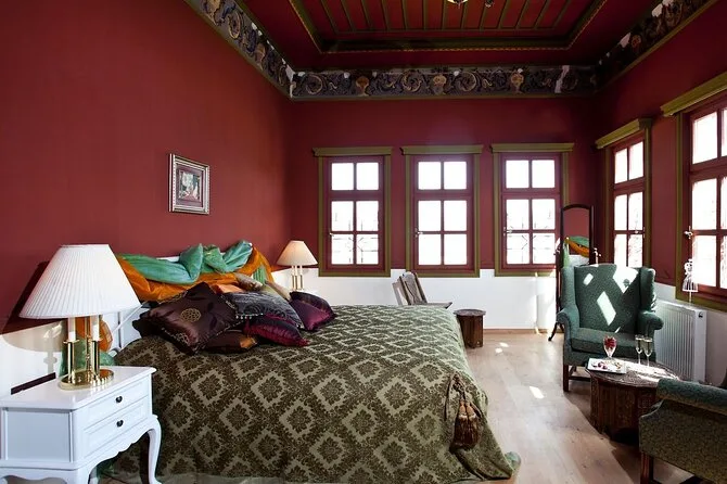 Você ficará uma noite em um hotel caverna tradicional na Cappadocia — paredes de pedra e uma atmosfera única.
