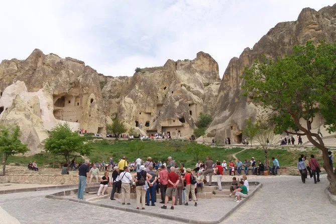 O tour inclui Castelo de Uçhisar, Vale do Amor, Pasabag (Vale dos Monges), Museu a Céu Aberto de Zelve, Chaminés de Fada, Vale de Devrent, Avanos, vila de Çavuşin e almoço em Göreme.