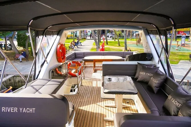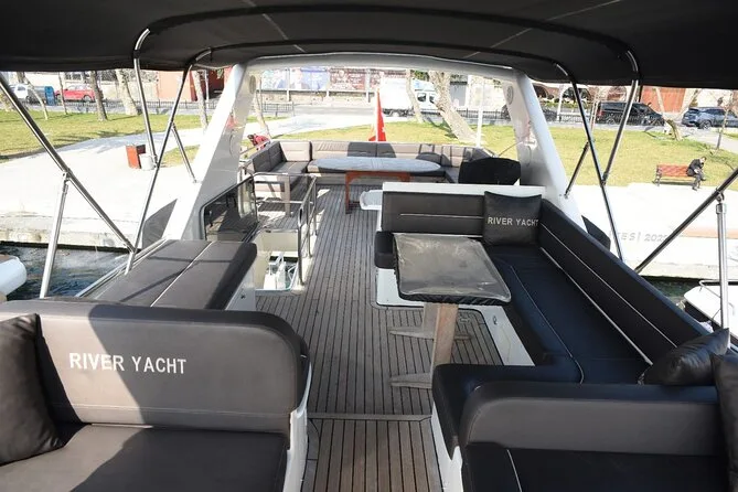 Seu passeio de 2 horas pelo Bósforo em Istambul inclui um iate privado de luxo, com assentos confortáveis e banheiros a bordo. Você será servido com bebidas cortesia—limonada caseira com hortelã fresca, chá ou café—além de frutas frescas preparadas diariamente, biscoitos e baklava tradicional enquanto navega entre palácios e pontes icônicas que ligam Europa e Ásia.