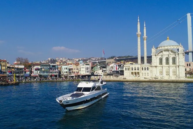 Você vai navegar pelo Estreito de Bósforo em Istambul num iate privado, tomando limonada fresca ou chá enquanto palácios e pontes deslizam dos dois lados. Ouça histórias locais com seu guia, saboreie baklava e frutas frescas, e veja o dia a dia das margens. A cidade vista da água é outra — mais calma — e você vai querer que esse momento dure mais.
