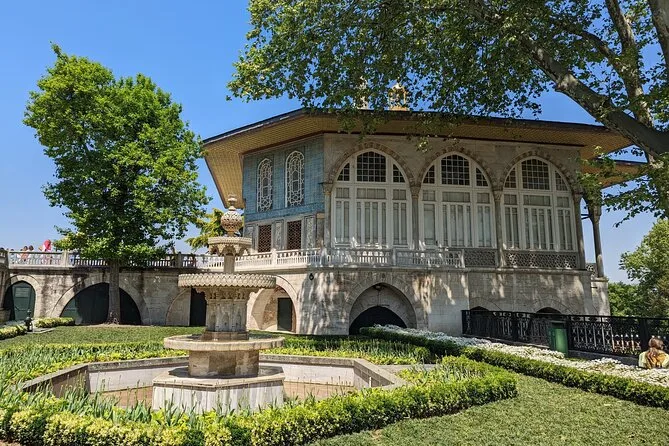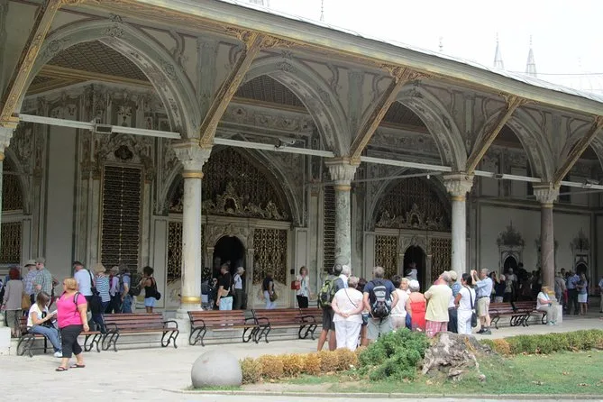 Seu dia inclui traslado prático do Porto de Galata ou do centro de Sultanahmet (se selecionado), ingressos sem fila para o Palácio Topkapi e o Harém, uso de fones para ouvir cada detalhe do guia local, além de bastante tempo para explorar jardins e salas históricas antes de seguir por conta própria, se quiser.