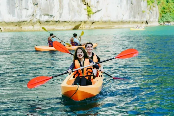Sim — o caiaque na lagoa é oferecido por uma taxa extra, paga diretamente à equipe do cruzeiro (50k-150k VND).