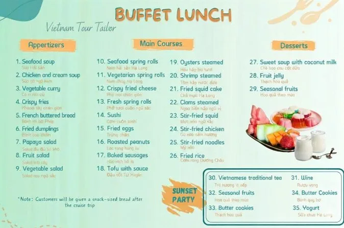 Sim, um almoço vietnamita de frutos do mar (com opção vegetariana) é servido a bordo durante o passeio.
